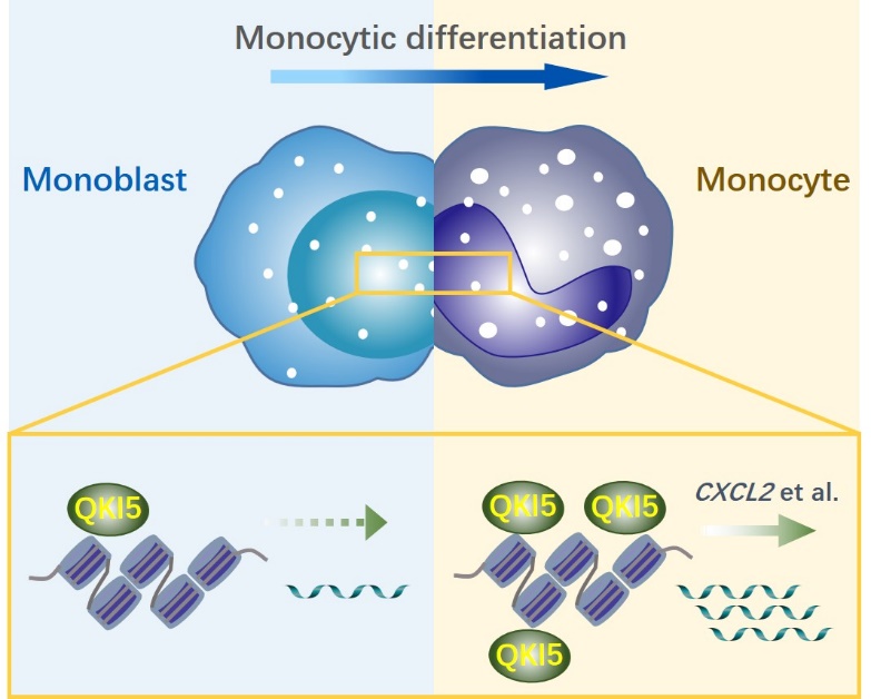 2021年10月14日,太阳成集团tyc122cc入口基础医学研究所余佳团队在Genome Biology期刊在线发表题为“A global screening identifies chromatin-enriched RNA-binding proteins and the transcriptional regulatory activity of QKI5 during monocytic differentiation” 的研究论文。该研究首次全局性描绘了造血细胞中染色质富集型RBP的分布图谱,并对其染色质结合机制进行探究,鉴定出RBP QKI5通过转录调控促进单核细胞分化的新机制。