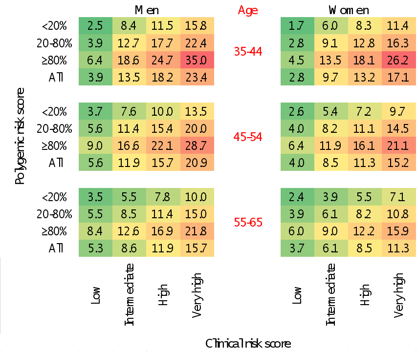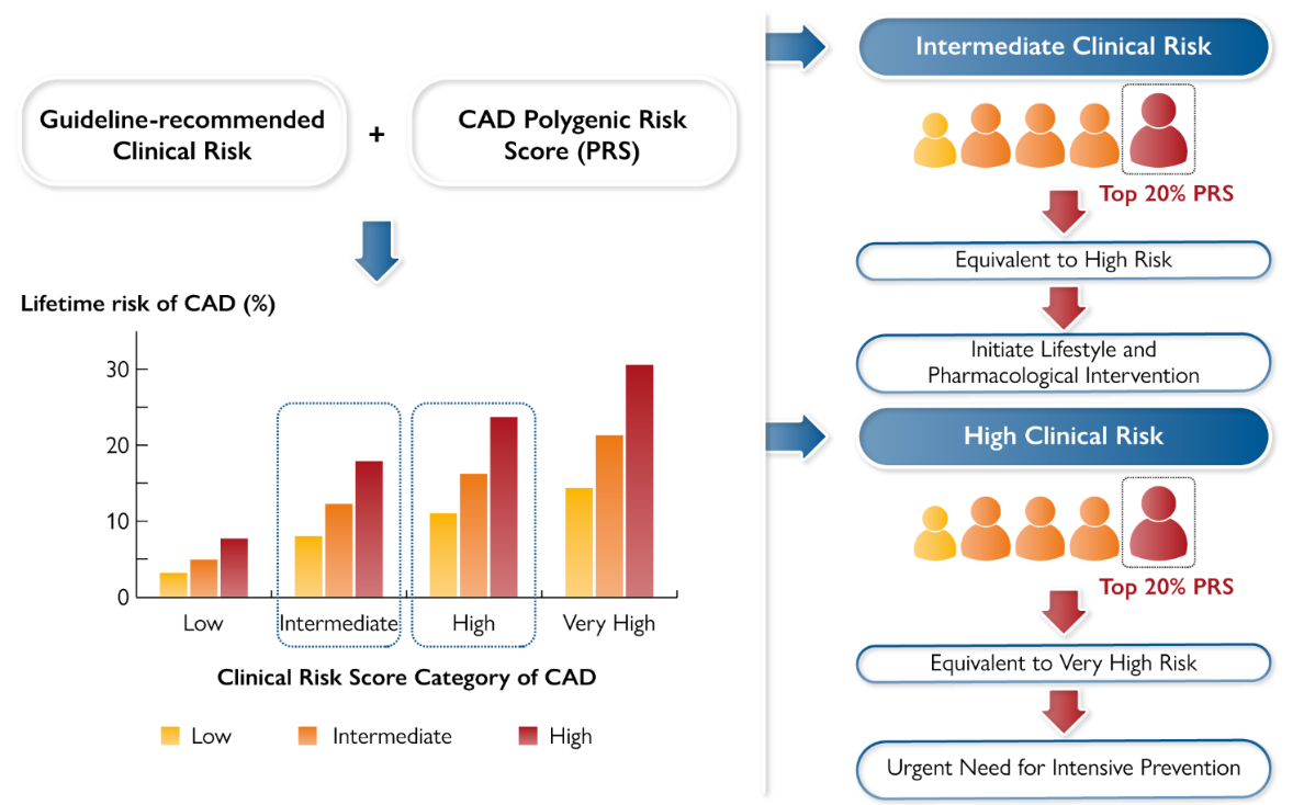 图2. 多基因风险和临床风险联合评估指导心血管疾病防治决策