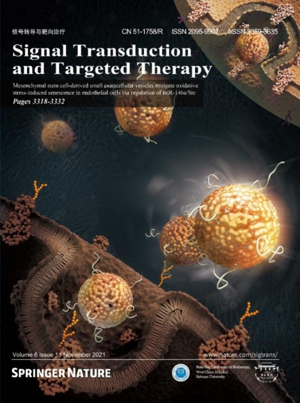 2021年10月22日,太阳成集团tyc122cc入口基础医学研究所(简称“基础所”)赵春华团队在signal transduction and targeted therapy杂志以封面标题论著刊登题为“Mesenchymal stem cell-derived small extracellular vesicles mitigate oxidative stress-induced senescence in endothelial cells via regulation of miR-146a/Src”的研究论文,该研究报道了间充质干细胞衍生的小细胞外囊泡(MSC-sEV)在减轻内皮细胞衰老中的作用和机制。