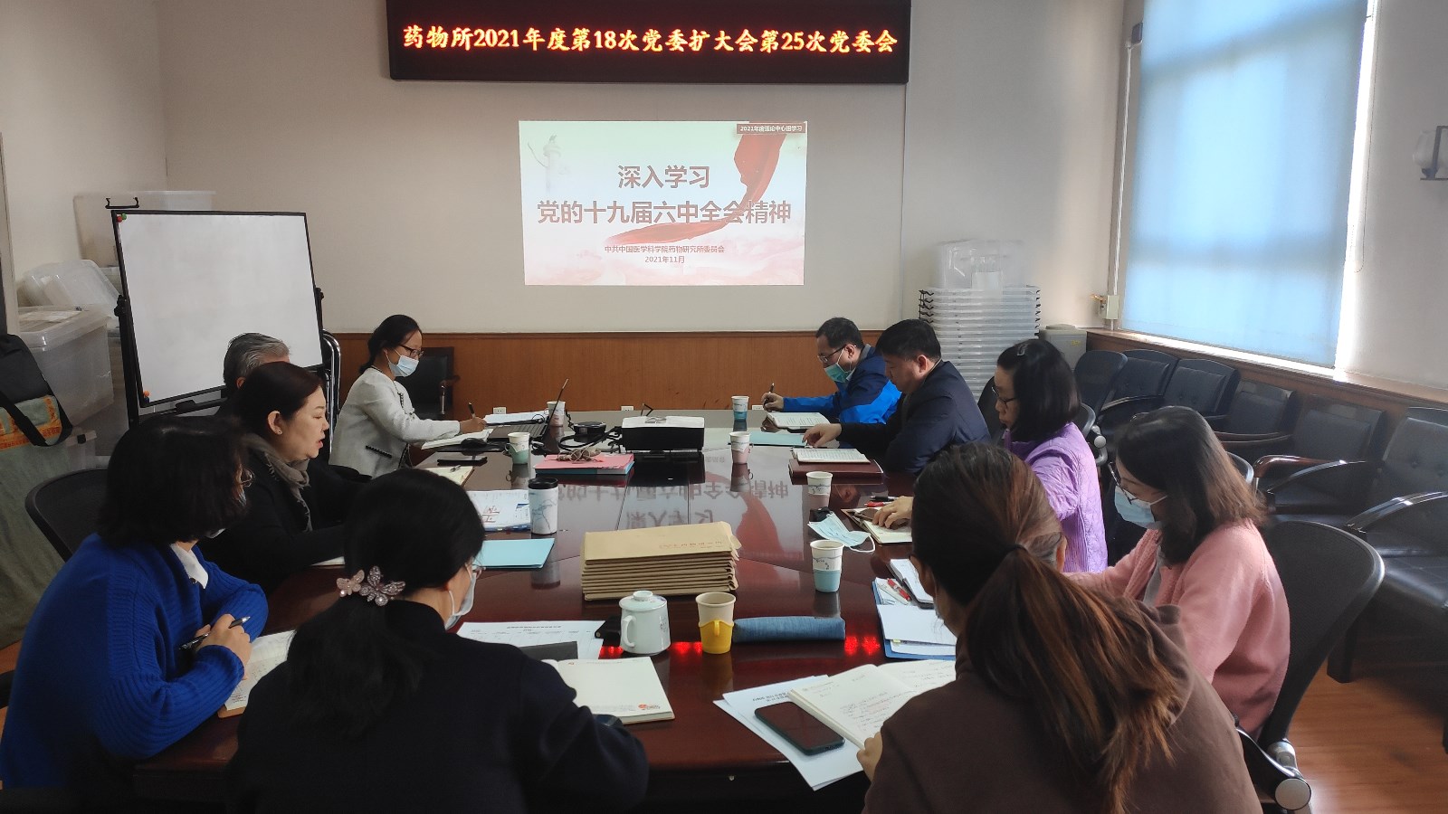 11月16日上午,药物所党委理论学习中心组集中学习党的十九届六中全会精神。药物所党委书记、副所长王珂同志主持学习,党委委员、相关部门负责人参加会议。