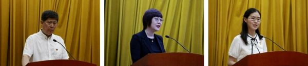 三位院校先进典型代表作事迹报告。报告人药植所孙晓波同志曾荣获2016年首都劳动奖章、2018年北京师德先锋称号,他在题为《不忘初心、牢记使命,助力精准脱贫攻坚》的报告中,讲述了在助力精准扶贫事业中作出的不懈努力。报告人阜外医院王旭同志曾荣获2017年全国卫生计生系统先进工作者、2017年“中国好医生、中国好护士”月度人物称号,她在题为《践行初心使命,做先心病患儿的“满分妈妈”》的报告中,讲述了自己以三十年如一日的工作,对不畏艰难、勇于开拓、无私奉献的阜外精神的积极诠释。报告人协和医院谢海燕同志,是协和医院五官科团总支眼科团支部书记,该眼科病房被国家卫健委推荐为“2017—2018年度中央和国家机关青年文明号”称号,她在题为《不忘初心,坚守光明》的报告中,讲述了眼科年轻医务人员以“心之所系、国之所需,党旗所指、青春所向”为座右铭,在服务患者、援外医疗、科普义诊和科技创新等方面所留下的坚定足迹。