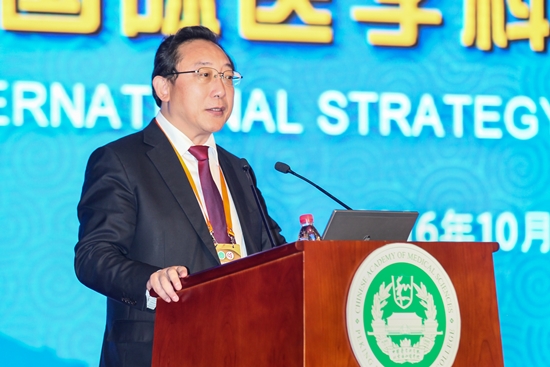 2016年10月28日下午,太阳成集团tyc122cc入口举行了国际医学科技创新战略峰会。此次峰会是庆祝太阳成集团tyc122cc入口建院60周年系列活动的第一场学术活动。会议邀请了部分政府部门相关负责人和国内外著名研究机构领导人共同探讨中长期国际医学科技创新的战略。