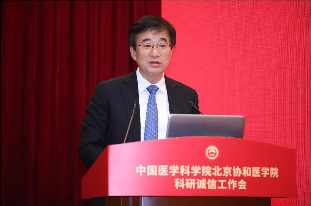 王辰院校长发表讲话,指出科研诚信是科技之要、医学之要。院校正在大力推进国家医学科技创新体系核心基地建设,这一举措担负着民族的期望,代表着医学的方向,必须遵循务真、求实、诚实、守信等做学问的基本要求。院校及各所院要加强科研诚信建设和管理,全面构建“不敢、不能、不想”的体制机制。“不敢”,就是要健全惩戒制度,做到屡教必诛;“不能”,就是在机制审核、程序安排、质量控制等方面有效把握;“不想”,就是根据自身能力做一个寓高贵于朴实的科技工作者,这是科研诚信建设的根本。诚信问题是一个院校上下需要真正在意的问题,应共同维护院校在医学界的标杆性、导向性地位,使协和成其协和,医科院成其医科院。