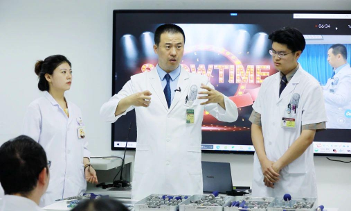 他熟练应用各种教学方式。擅长双手同时绘制各种解剖板书图谱,在大大提高教学效率的同时,深深吸引了学生的注意力;精心设计制作多种自制教具,形象展示疾病发生过程。通过医工结合自主研发制备出3D打印高仿真彩排教学模型,围绕授课内容带领学生使用3D模型进行椎弓根螺钉置入、椎板切除等模拟操作,帮助学生快速掌握知识,并在临床教学中广泛推广应用,开展的随机对照教学研究成果获评院校优秀教学论文。