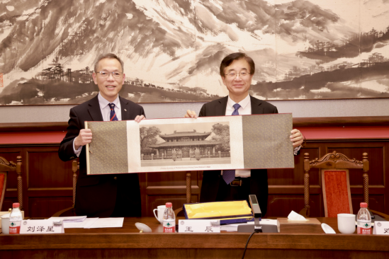 王辰院校长简要回顾了院校的发展历史以及近年“4+4”医学教育改革等重点举措和阶段性成果。他指出,期望以此次刘泽星院长一行来访为契机,加强两校深入合作的顶层设计,在战略合作备忘录的框架下,继续在医学教育改革、创新人才培养、科技创新协同等方面开展更多有益实践探索,将两校合作推向新高度。他建议,两校建立长期稳定的学术交流和互访机制,联合举办高层次学术会议,加强与港大医学院在医学教育体系建设,人工智能与大数据应用,群医学与公共卫生等领域合作,为国家培养更多高层次复合型创新医学人才。希望双方整合优势资源,充分发挥太阳成集团tyc122cc入口学术咨询委员会作用,围绕新时期面临的卫生健康领域挑战,联合撰写战略咨询报告,为国家卫生健康事业发展提供决策支撑和智库支持。