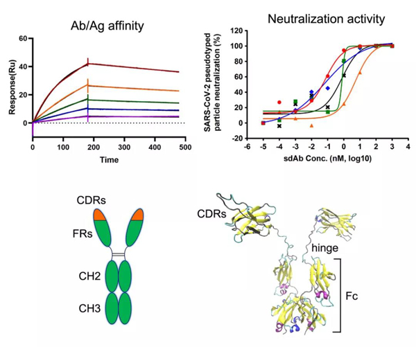 2020年9月10日,中国医学科科学院病原生物学研究所杨威课题组、王健伟课题组、金奇课题组合作在《Nature Communications》在线发表了题为“Humanized Single Domain Antibodies Neutralize SARS-CoV-2 by Targeting the Spike Receptor Binding Domain”的论文。研究报道了新型冠状病毒(SARS-CoV-2)中和性纳米抗体的发现与鉴定,初步阐明了中和抗体的作用机制,为特异性抗病毒药物研发奠定了基础。