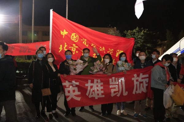 同机抵达的还有院校杨俊涛、王卓然两位援鄂队员和中日友好医院164位国家援鄂医疗队员。首都机场以民航界最高礼仪“过水门”的方式迎接白衣战士们回家。