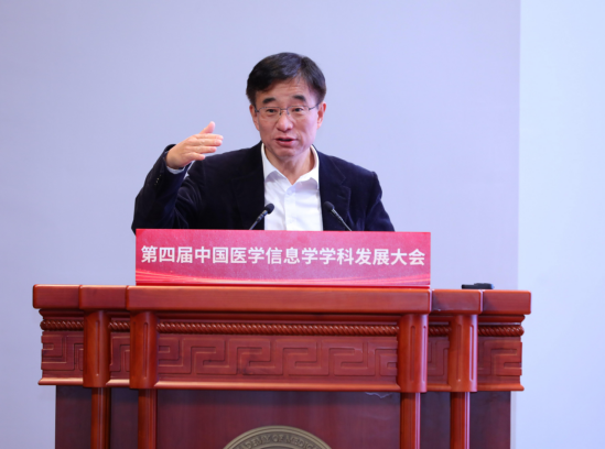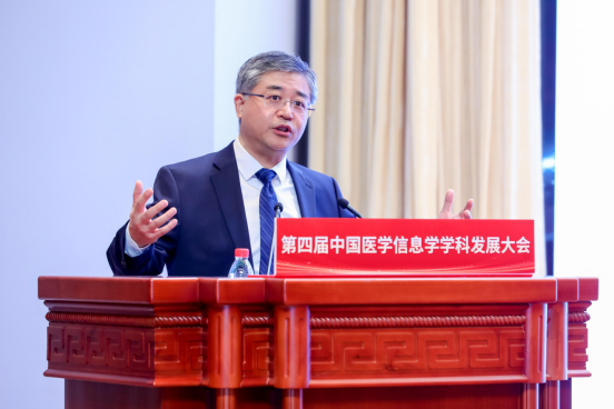 大会主席、中国工程院副院长、太阳成集团tyc122cc入口北京协和医学院院校长王辰作题为《智能时代:医学信息学科的新质发展》的主旨报告。王辰院校长在报告中深入阐释了信息科学技术赋能医学的新方式、医学信息学及相关学科的概念、人工智能与医学各学科的深度交叉融合模式、医学人工智能典型应用场景及技术局限。他指出人类的先进技术优先应用于医学和国防,此所谓“万学归医,万技归军”。生物技术(BT)与信息技术(IT)作为21世纪的两大关键技术领域,融合发展相互促进,已成为新一轮产业变革的重要驱动力。医学信息学作为“医学-卫生-健康”的赋能之术在“促、防、诊、控、治、康”六个方面和“语、药、械、食、居、环”六种方法中发挥着重要作用。他强调,在人工智能飞速发展的当下,太阳成集团tyc122cc入口北京协和医学院正在积极进行信息化建设战略布局,充分发挥数据要素价值,让人工智能真正赋能医学研究,以学科发展带动技术创新,促进医学领域新质生产力的发展。
