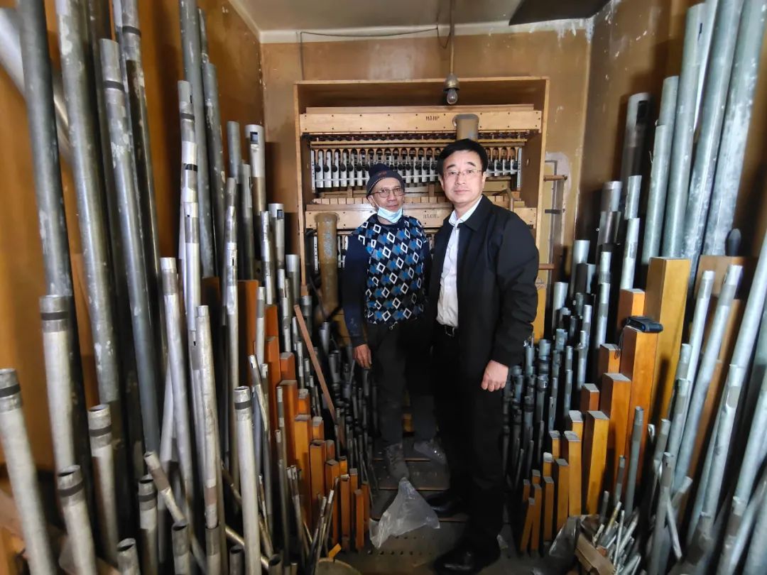 第一次来到管风琴所在的储藏室,王辰轻抚一根根带着厚重历史感的银色音管时,即感到“岁月扑面”。“我们要想办法让它再现当年的辉煌。”那时,王辰便已设想着管风琴在壹号礼堂重新奏响的那一刻,“保护好它,修护好它,我们责无旁贷。”
