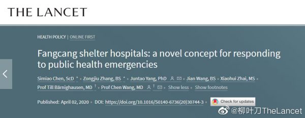 王辰院士团队有关方舱医院的论文