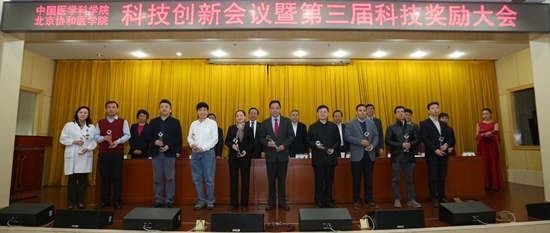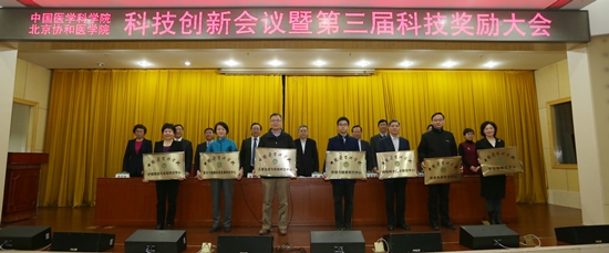 曹雪涛院校长对院校科技创新工作进行了总结,充分肯定了院校科技工作者对院校科技事业的发展做出的突出贡献,号召全体科技工作者向获得奖励的科学家们学习,对院校的科技工作明确提出三点意见:服务大局,院校科技创新工作迈向新的台阶;统一思想,深刻认识医学科技创新面临的新形势;继往开来,努力建成我国医学科技创新核心基地。他鼓励大家以院校60周年纪念大会为契机,深入学习、贯彻、落实习近平总书记贺信、李克强总理批示,刘延东副总理的重要讲话精神。充分认识、理解李斌主任,刘谦副主任的期望,结合十三五规划,力争取得更大的成绩,为建设健康中国和科技强国,实现“两个一百年”的奋斗目标,继续谱写新的篇章。