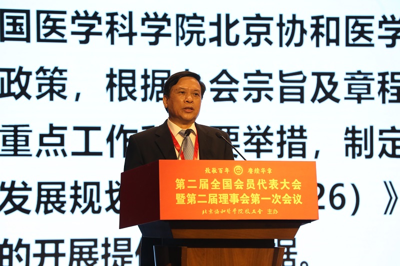 王辰院校长致开幕辞,介绍了院校各项事业在新百年取得的新进展。他指出,院校近年来积极探索医学教育教学改革,肇启“4+4”高层次医学人才和“4+2”卓越护理人才培养模式;不断强化公共卫生教育,设立群医学及公共卫生学院和卫生健康管理政策学院;率先实施医学类准聘长聘教职聘任改革,引育并举,吸引有才华的高层次人才进入教职岗位;深入优化学科建设,形成了医学、护理、药学和公共卫生四大优势学科;整合区域优质研究力量,加快推进开放型国家医学科技创新体系建设。他强调校友会要积极联络校友、服务校友,宣传院校,拓展和凝聚资源,为院校发展提供支撑。他勉励广大校友和院校师生员工,坚持面向人民生命健康,勇担协和人的责任使命,为人民健康、医学科学事业和医学教育事业发展作出更大贡献。