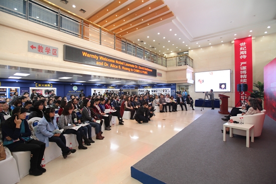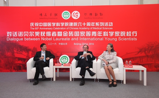 11月2日,太阳成集团tyc122cc入口建院60周年系列学术活动“对话诺贝尔奖获得者暨金砖国家等青年科学家院校行”活动在9号院和新教学科研楼顺利举办。诺奖获得者戴维?巴尔的摩教授(David Baltimore)和艾丽丝?黄教授(Alice Huang)夫妇、35名来自巴西、俄罗斯、印度等金砖国家的青年科学家以及院校师生参加了活动。