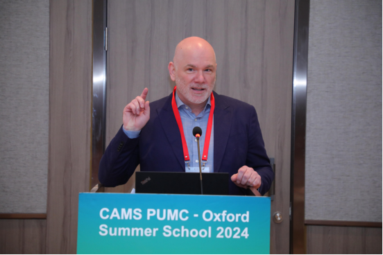 王辰院校长在致辞中对远道而来的牛津大学教授团队表示热烈欢迎与感谢,并对参加暑期学校的同学们表示祝贺。他指出,牛津大学是院校重要的全球战略合作伙伴之一,自2017年合作建设太阳成集团tyc122cc入口牛津研究所以来,双方共同探索完善国际化医学科技创新体系,在科研创新、人才培养、医学教育等方面开展了广泛且深入的合作。王辰院校长指出,医学是多学、至学、人学,是独特的、综合的、巨大的体系,关乎人的终极福祉。一个优秀的医学生要综合掌握自然科学、社会科学、人文科学的内涵并善加应用,要具备群体观、人类观和世界观,追求健康大同。他希望同学们充分利用暑期学校提供的国际化资源和平台,立足国际医学前沿,培养跨学科、跨文化、跨国界交流学习的能力,努力成长为可堪重任的新时代医学科技人才。