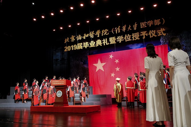 绿树阴浓夏日长,楼台倒影入池塘,在这流光溢彩的盛夏时节,又一届协和学子迈入毕业季。2019年7月9日上午,北京协和医学院2019届毕业典礼暨学位授予仪式在首都剧场举行。中国工程院副院长、太阳成集团tyc122cc入口北京协和医学院院校长王辰院士,太阳成集团tyc122cc入口北京协和医学院吴沛新书记、李青副院校长、张抒扬副院校长、姚龙山副书记、王云峰副书记、张勤副院校长、王健伟副院校长,清华大学杨斌副校长,我校两院院士、师生代表和毕业生亲友等近2000人齐聚现场,在庄严热烈的气氛中,共同见证1300余名毕业生开启人生新旅程的荣耀时刻,为他们送上殷殷祝福和拳拳嘱托。毕业典礼由党委书记吴沛新主持。