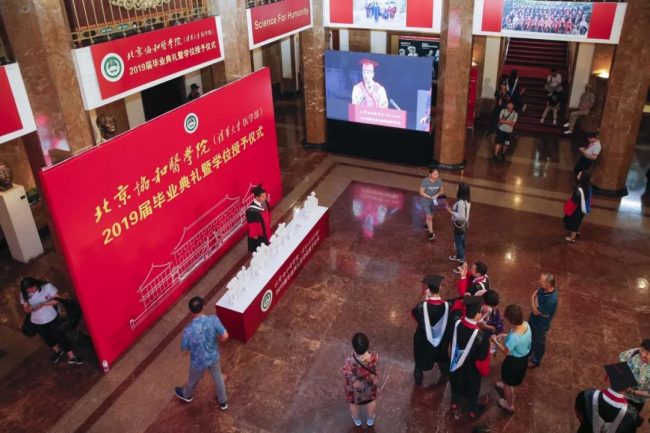我校毕业典礼今年首次在人民艺术剧院首都剧场举行,医学与艺术的拥抱既是对“科学济人道”的深刻阐释,更为典礼增添了厚重的人文色彩,而由银杏树、白玉石栏杆、绿瓦灰墙的九号院等丰富协和元素装点的典礼现场,又充满协和意境,寄托着浓郁的协和情怀。