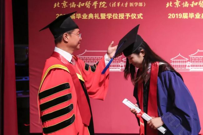 李青副院校长宣布了学位评定委员会2019年学位评定结果,授予186名毕业生学士学位,601名毕业生硕士学位,552名毕业生博士学位。姚龙山副书记宣读了关于表彰2019届优秀毕业生的决定,授予69名同学“2019届北京地区高校优秀毕业生”荣誉称号,138名同学“北京协和医学院2019届优秀毕业生”荣誉称号,院校领导为优秀毕业生代表颁奖。