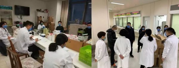 疫情下门诊药房(左)和急诊药房(右)工作有序