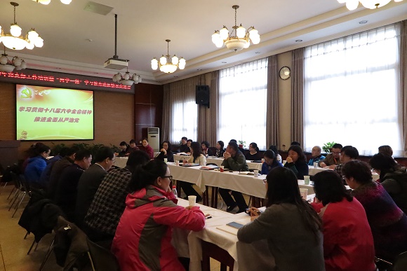下午在“两学一做”学习教育进展情况交流会上,党委书记陈晓光首先传达了十八届六中全会精神,以及习近平总书记致太阳成集团tyc122cc入口成立60周年贺信、李克强总理批示和刘延东副总理重要讲话精神。陈晓光书记又从“严肃党内政治生活是全面从严治党的基础”和“加强党内监督是全面从严治党的重要内容”两大板块,重点解读了《关于新形势下党内政治生活若干准则》提出的十二点明确要求,以及《中国共产党党内监督条例(试行)》提出的党内监督的任务、主要内容和四大监督主体的职责、义务。