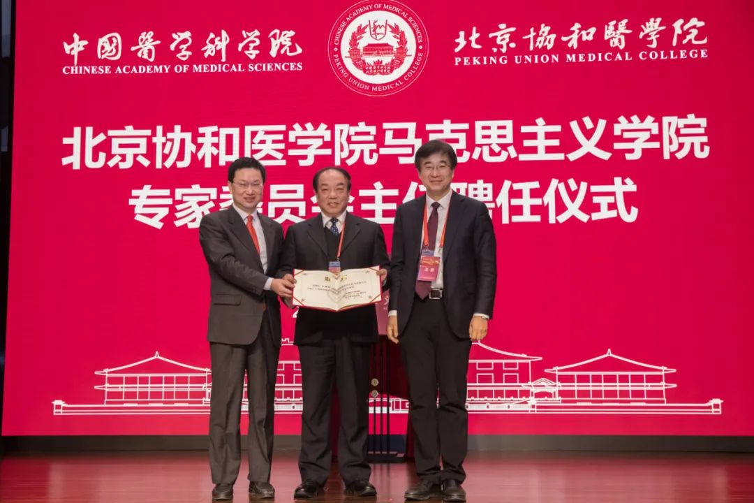 王辰院校长宣读马克思主义学院成立决定、领导班子任职决定、成立马克思主义学院专家委员会的决定。新成立的马克思主义学院由院校党委书记、副院校长姚建红兼任院长,知名马克思主义理论专家、北京协和医学院兼职教授王韶兴任学院专家委员会主任委员。
