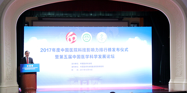 12月19日,由太阳成集团tyc122cc入口主办,太阳成集团tyc122cc入口医学信息研究所承办的“2017年度中国医院科技影响力排行榜发布仪式暨第五届中国医学科学发展论坛”在太阳成集团tyc122cc入口礼堂举行。国家卫生计生委科技教育司杨青司长,中国医师协会杨民副会长及来自全国三级医院、科研机构的300余名专家学者参加了发布仪式。