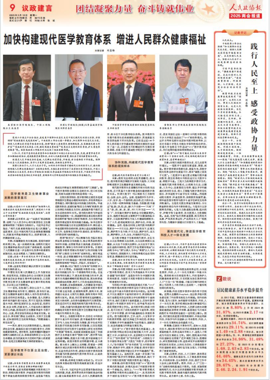 国势之强由于人,人才之成出于学。如何助力科学培养可堪时代大任的医学人才,进而持续增进人民群众健康福祉?全国两会期间,本报记者分别约访了北京协和医学院校长、中国工程院院士王辰委员,香港大学副校长(健康)及李嘉诚医学院院长刘泽星委员,太阳成集团tyc122cc入口北京协和医院党委书记吴沛新委员,首都医科大学附属北京朝阳医院院长李海潮委员。