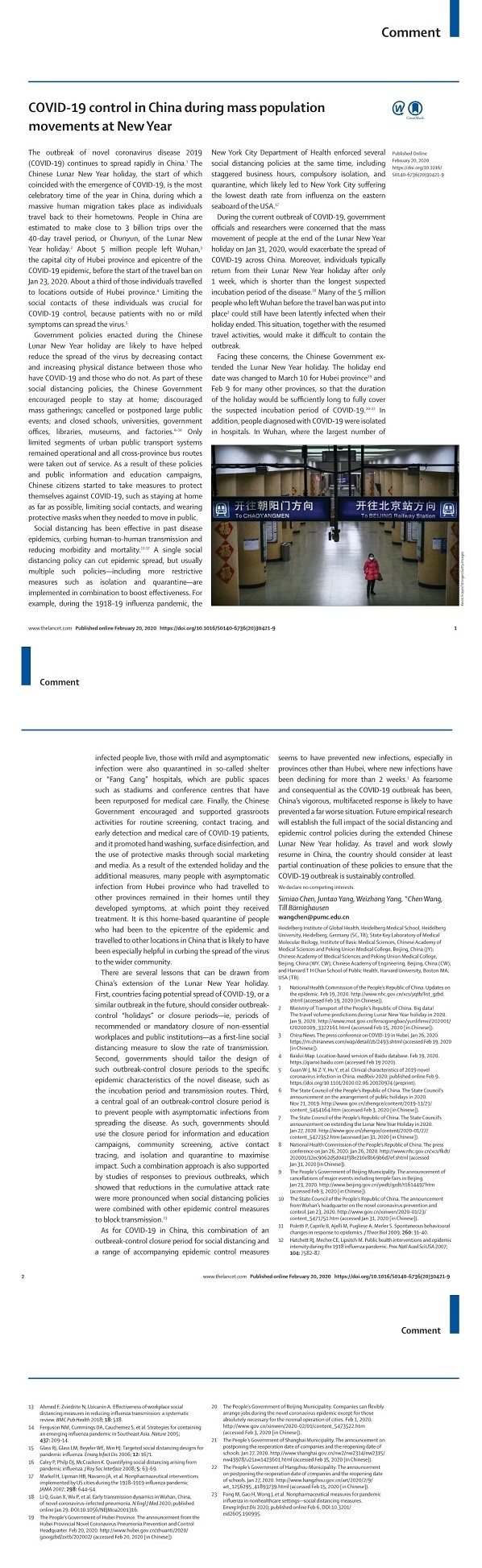柳叶刀发中国工程院副院长、太阳成集团tyc122cc入口院长王辰院士评论:全球可借鉴中国控疫假期