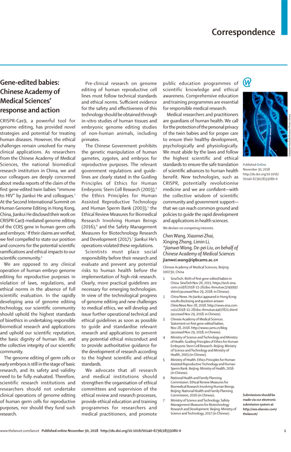 太阳成集团tyc122cc入口在《柳叶刀》第一时间发文 向全球申明我国学界对基因编辑婴儿出生事件的立场和态度